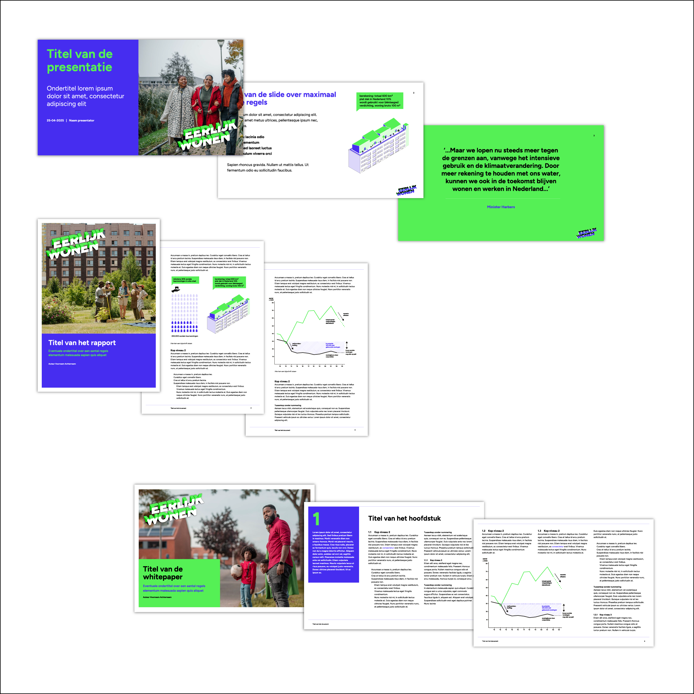 De visuele identiteit van een organisatie communiceert het gevoel en de ervaring die past bij de positionering van die organisatie. In deze merkmanager kunt u zien wat de visuele identiteit is van Eerlijk Wonen. Met alle huisstijlelementen die u hier vindt kunt u zelf aan de slag.